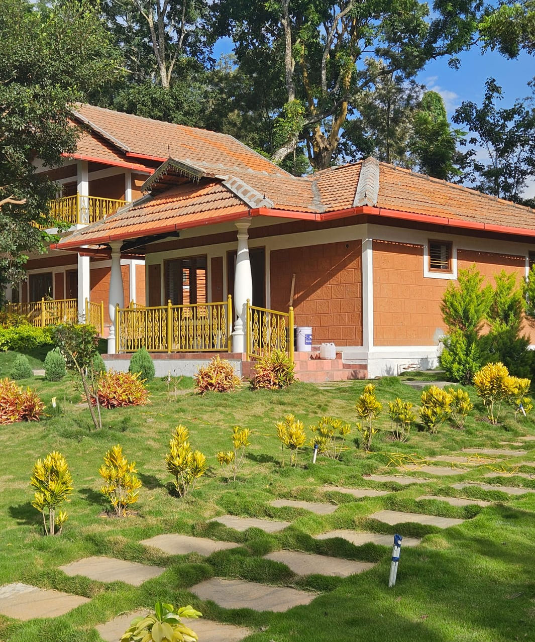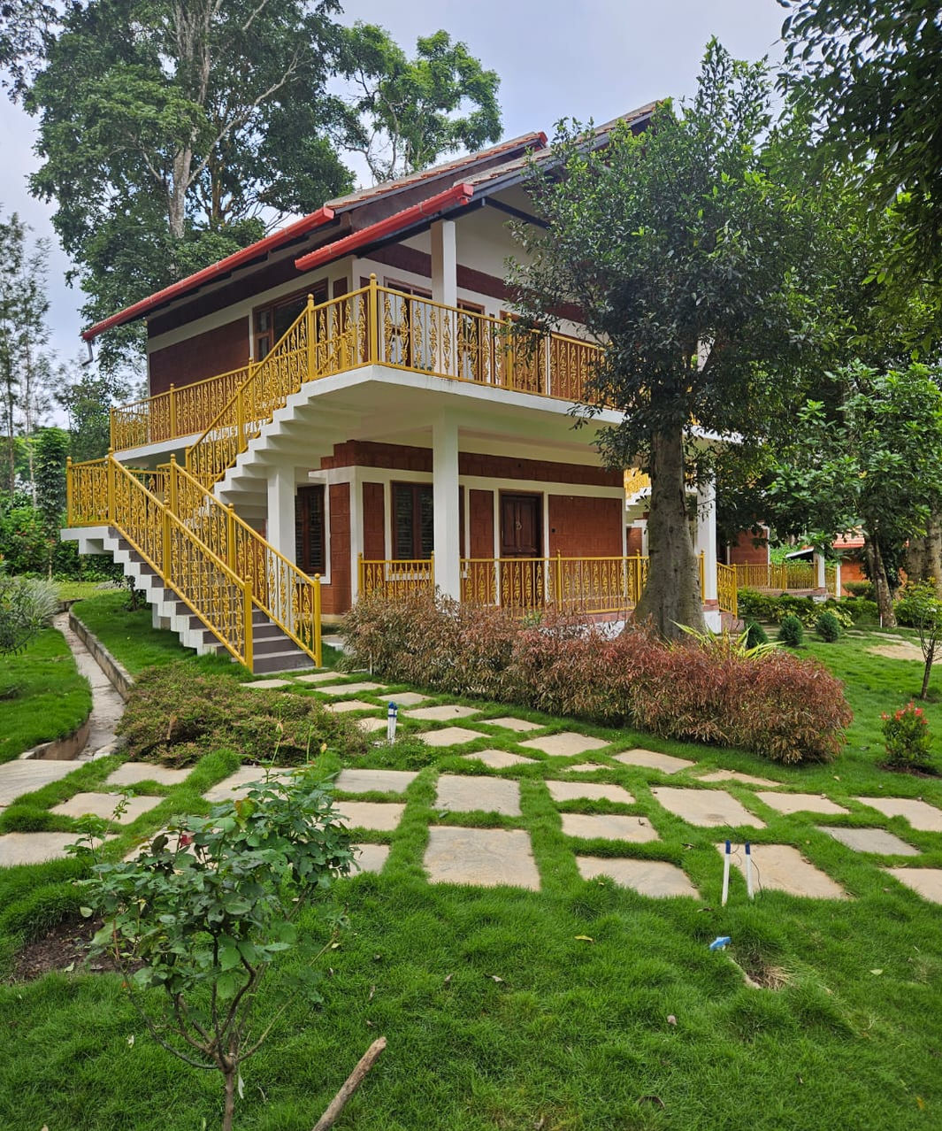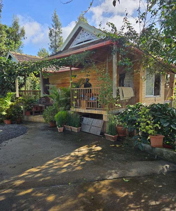 This project highlights a wooden house with a porch surrounded by greenery, showcasing a seamless integration of architecture and nature. The serene and natural setting enhances the overall appeal of the design.